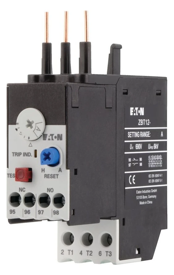 190936 EATON Relais de surcharge ZBT12-2,4 1NO + 1NF, 1,6 → 2,4 A F.L.C., puissance de contact 2,4 A, 1 kW, 690 Vca, SP