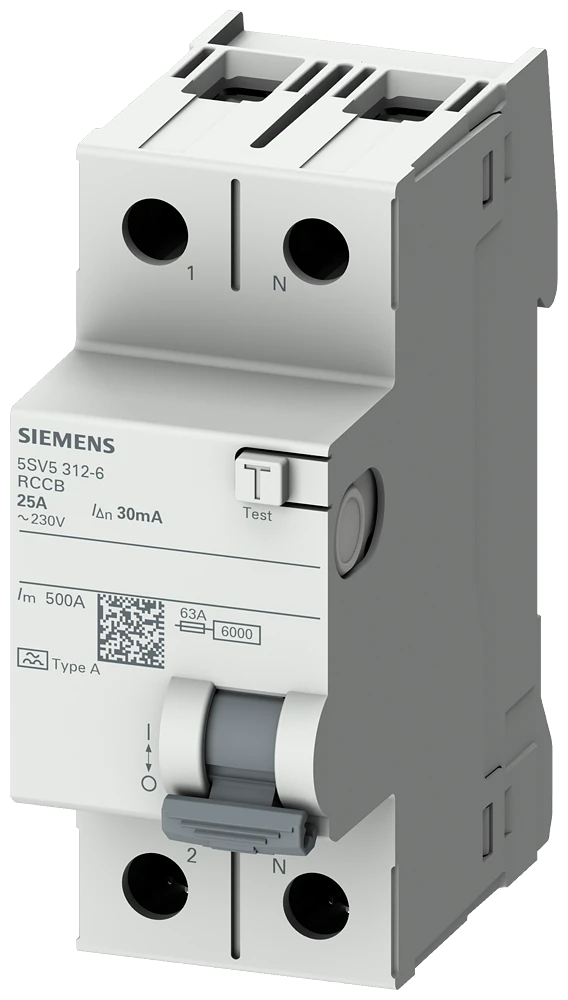 5SV5614-6 Siemens Residual current operated circuit breaker, 2-pole, Type A, In: 40A, 300mA, Un AC: 230V Residential