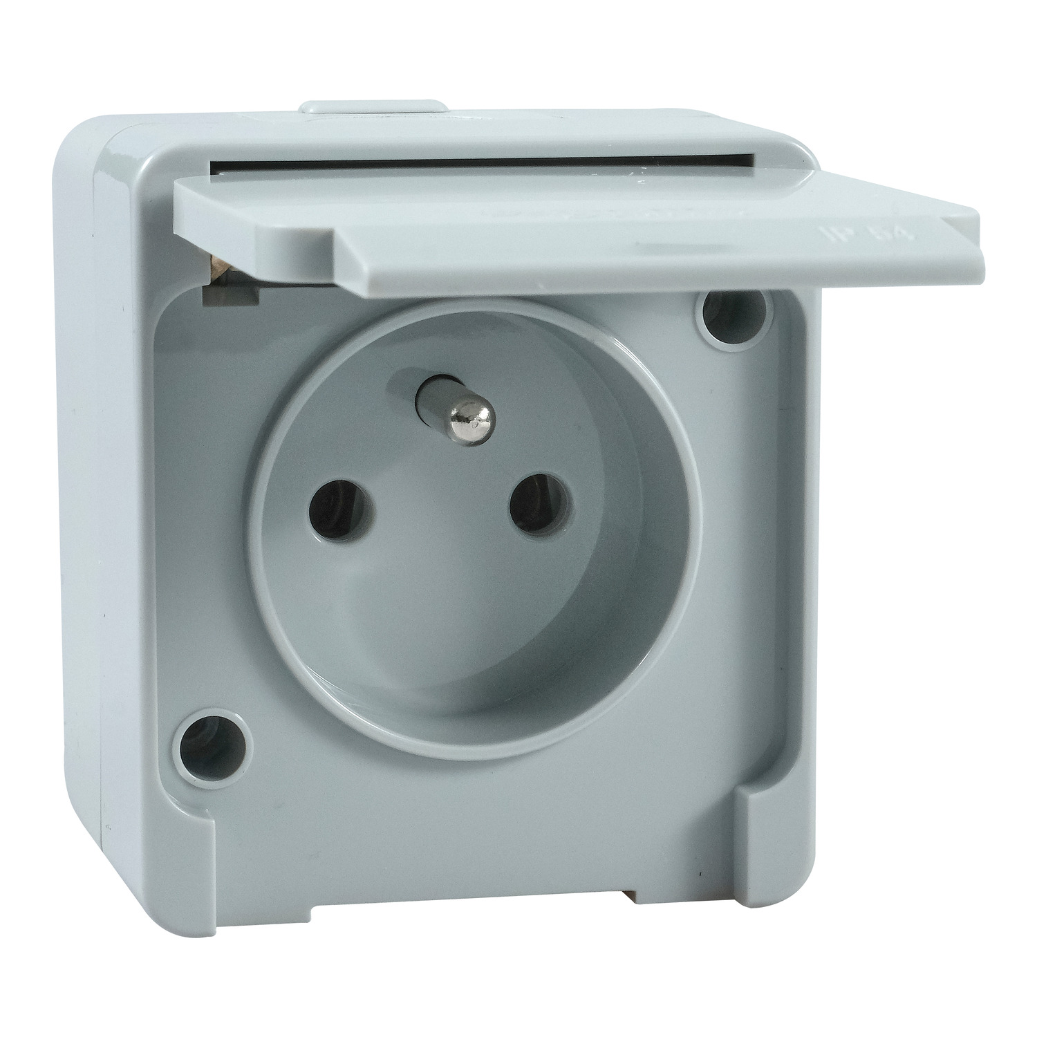 Wetroom - single socket-outlet pin earth - 2P + E - surface - grey