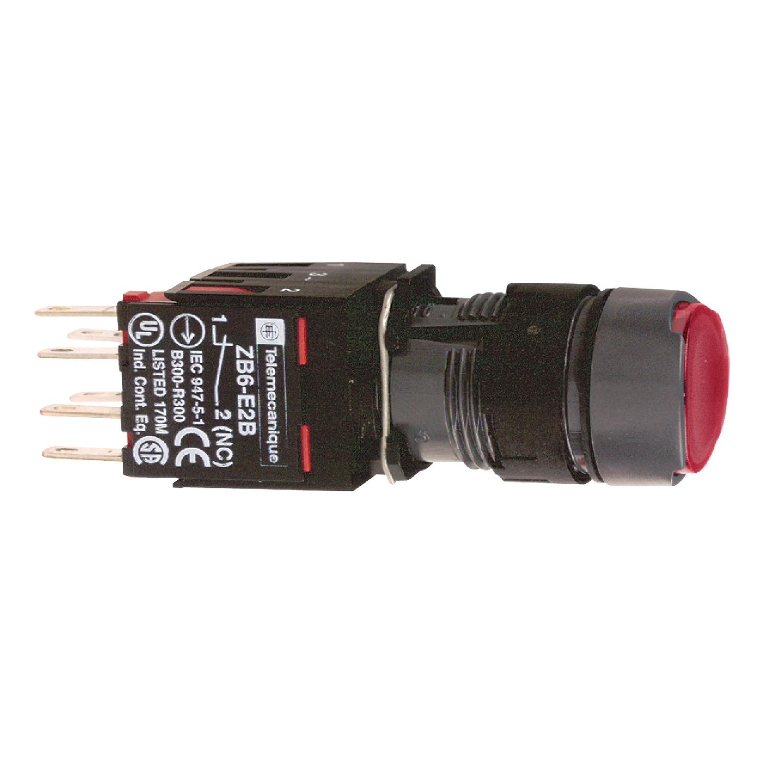 XB6AF4B2B Schneider Electric red flush complete illum pushbutton Ø16 latching 1NC 12...24V