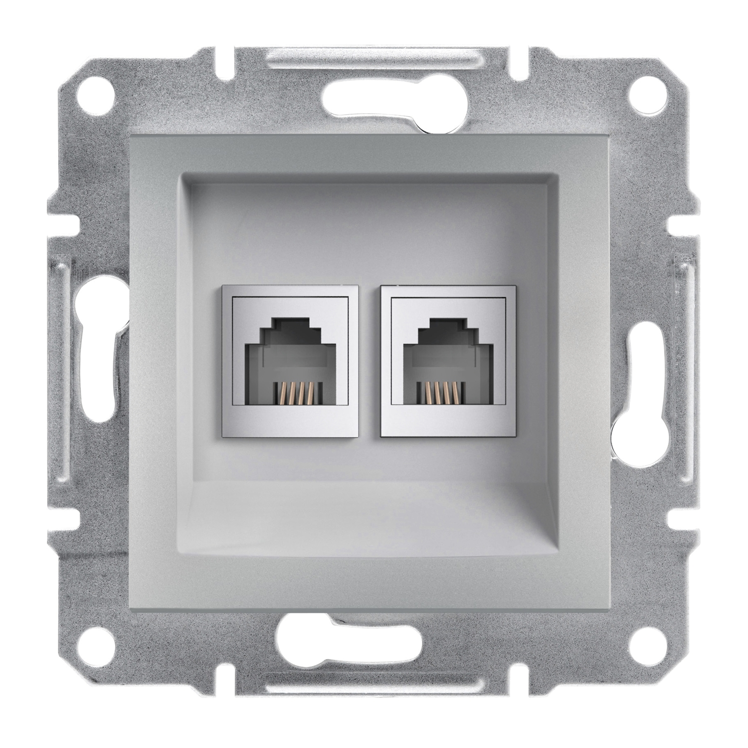Asfora, Double telephone socket, RJ11, 4 contacts, aluminium