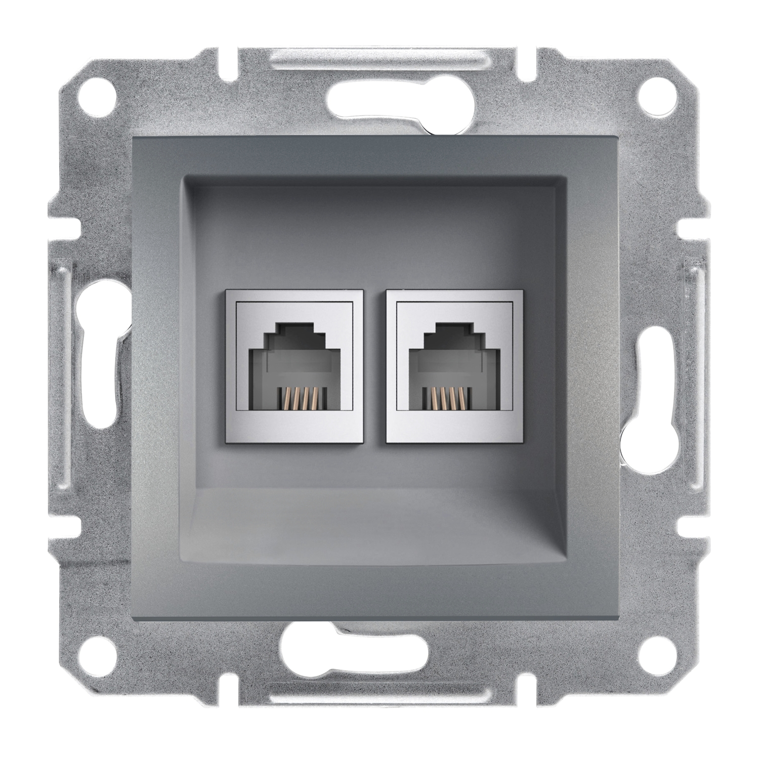 Asfora, Double telephone socket, RJ11, 4 contacts, steel