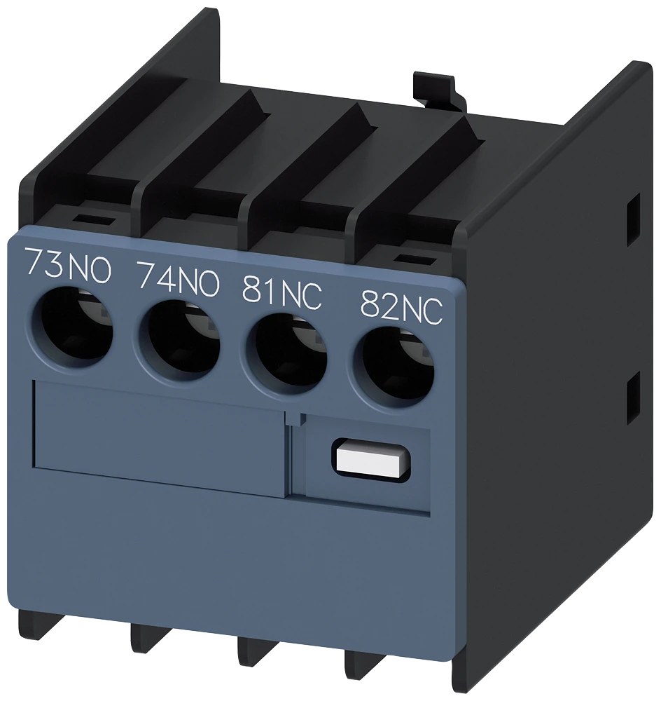 auxiliary switch, on the front, 1 NO + 1 NC, 73/74, 81/82, current path: 1 NO, 1 NC, cable entry from the top, screw terminal, for contactors 3RT2 and contactor relays 3RH2