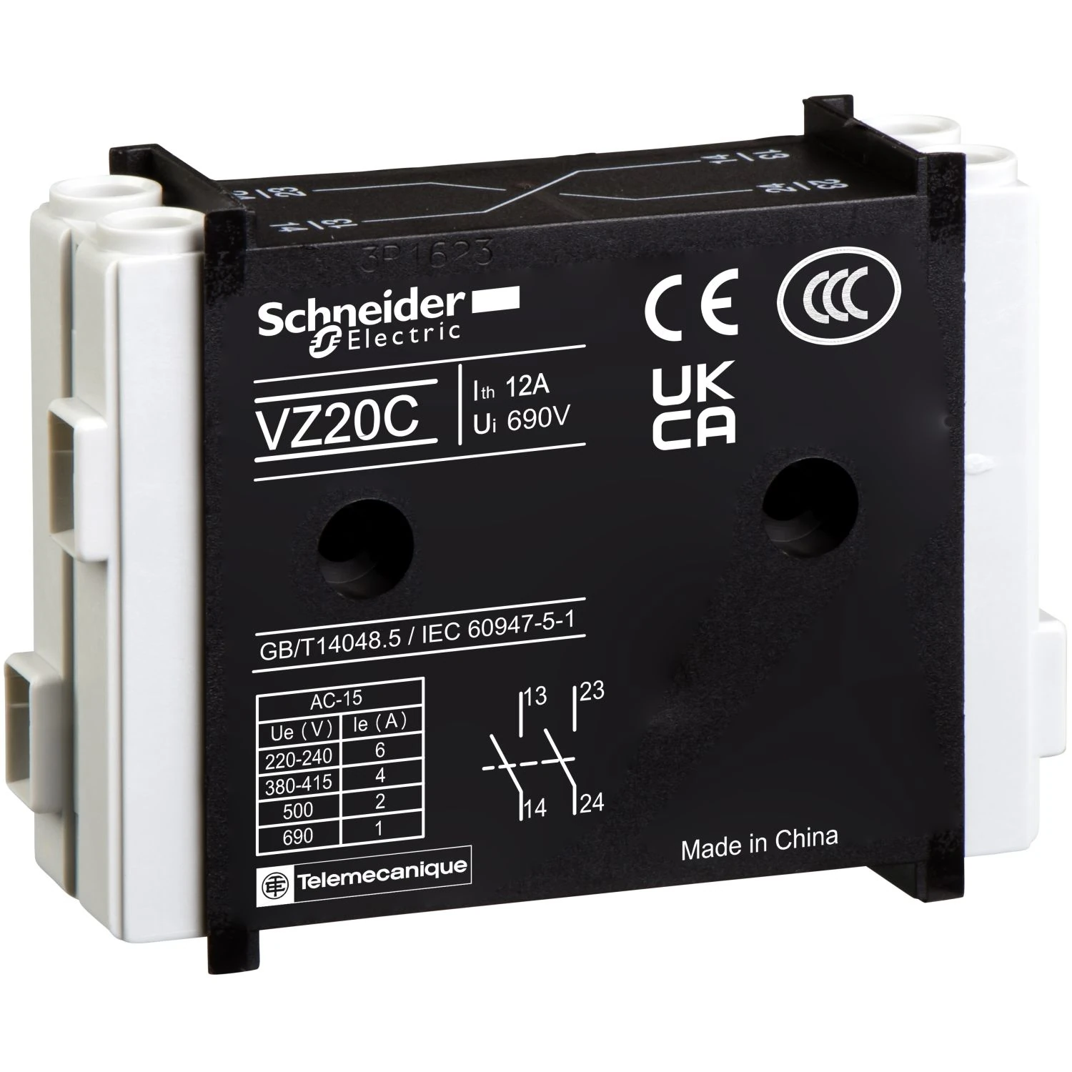 VZ20 Schneider Electric Hilfskontaktblock, TeSys Control, 1 Schließer + 1 Schließer, für V02-V6